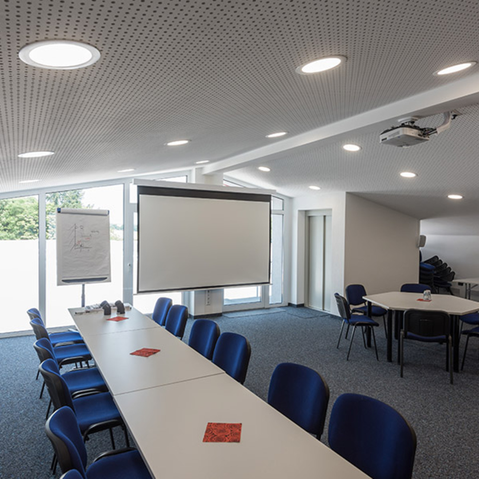 - Superflaches LED-Downlight für Einbau- und Anbaumontage und als Einlegeleuchte für Rasterdecken